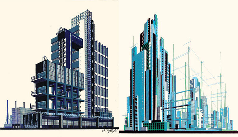 From 1927 to 1933 he published several renowned books who are among some of the most important of their time. The drawings shown here are from the book 101 Architectural Fantasies from 1933.