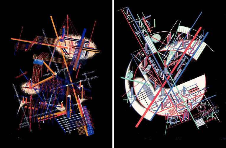 This stunning collection of extravagant architectural drawings can be found at the Yakov Chernikov International Foundation’s website. Yakov Chernikov (1889-1959) was a constructivist architect and graphic designer who was greatly interested in futurist movements and the suprematism of Malevich with whom he was acquainted.