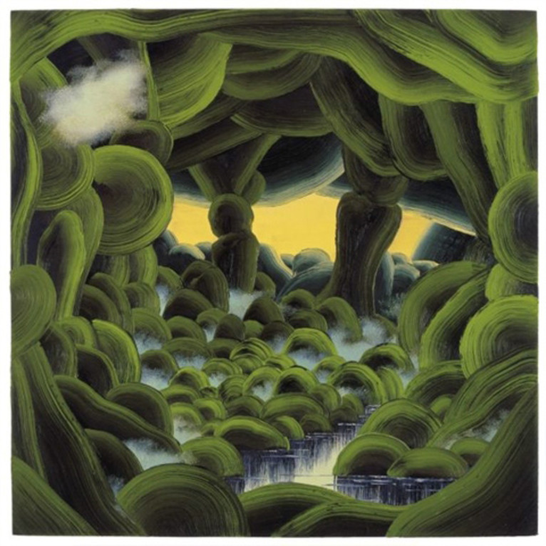 Artist Christian Hidaka is known for a distinctive visual vocabulary made of broad brush-strokes saturated by Technicolor palettes, recalling psychedelic design culture over the past forty years. His landscape paintings depict archaic and futuristic landscapes that combine styles and narratives whose conventions are partly inherited from Japanese prints.