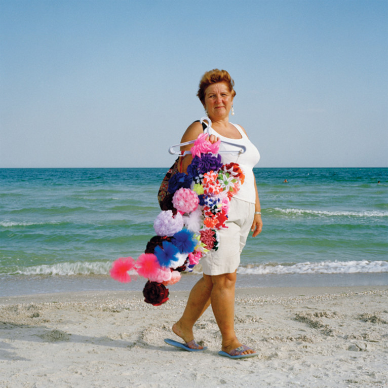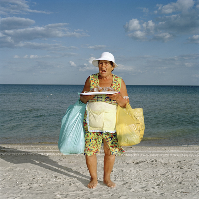 This project examines the quickly changing commercial landscape of Ukraine and its impact on the work force. By moving indoors, into corporate supermarkets and malls, it is becoming more Westernized and homogeneous. The archive of images of street vendors and other small, unlicensed businesses records an element of Ukrainian visual culture as it disappears. Not without irony, the beach portraits capture a black-market economy in the sunshine.