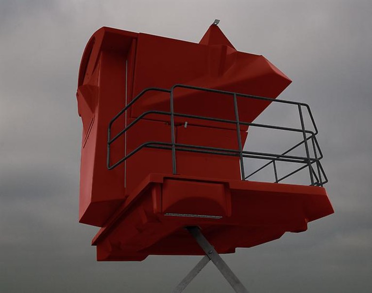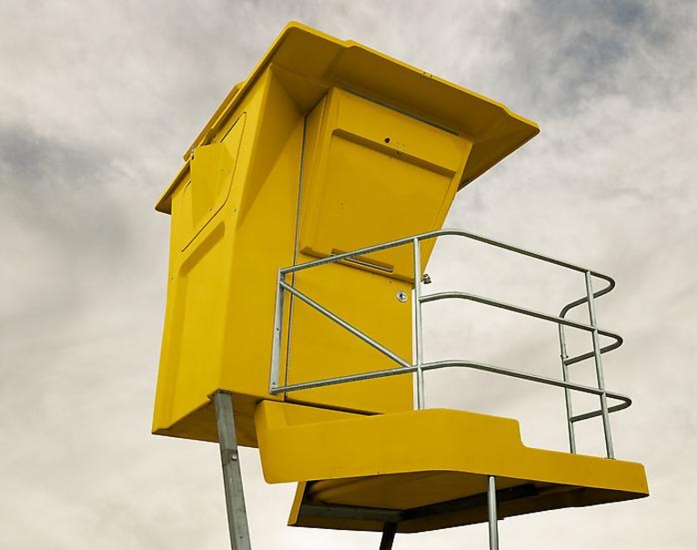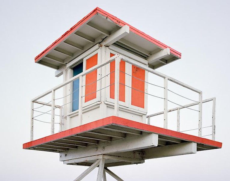 Each of the images of the lifeguard towers are photographed against a sky, shot from below, and never include any trace of sand or ocean. Because they are isolated from any reference to locale, they sometimes appear to be other than what they actually are.