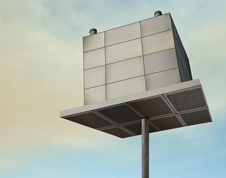 Zaki has digitally altered the images in a variety of ways ranging from simple color changes to gravity defying, physically improbable structural modifications. He has digitally removed any visible access routes such as ladders or ramps leading to the tower platforms. This appears as a subtle subtraction, but renders the towers essentially dysfunctional. The artist has pared down the visual information in this work to two fundamental elements, which are the tower and the sky (subject and background). Many of the towers have been paired with skies photographed on a different day, with rather incongruous lighting.