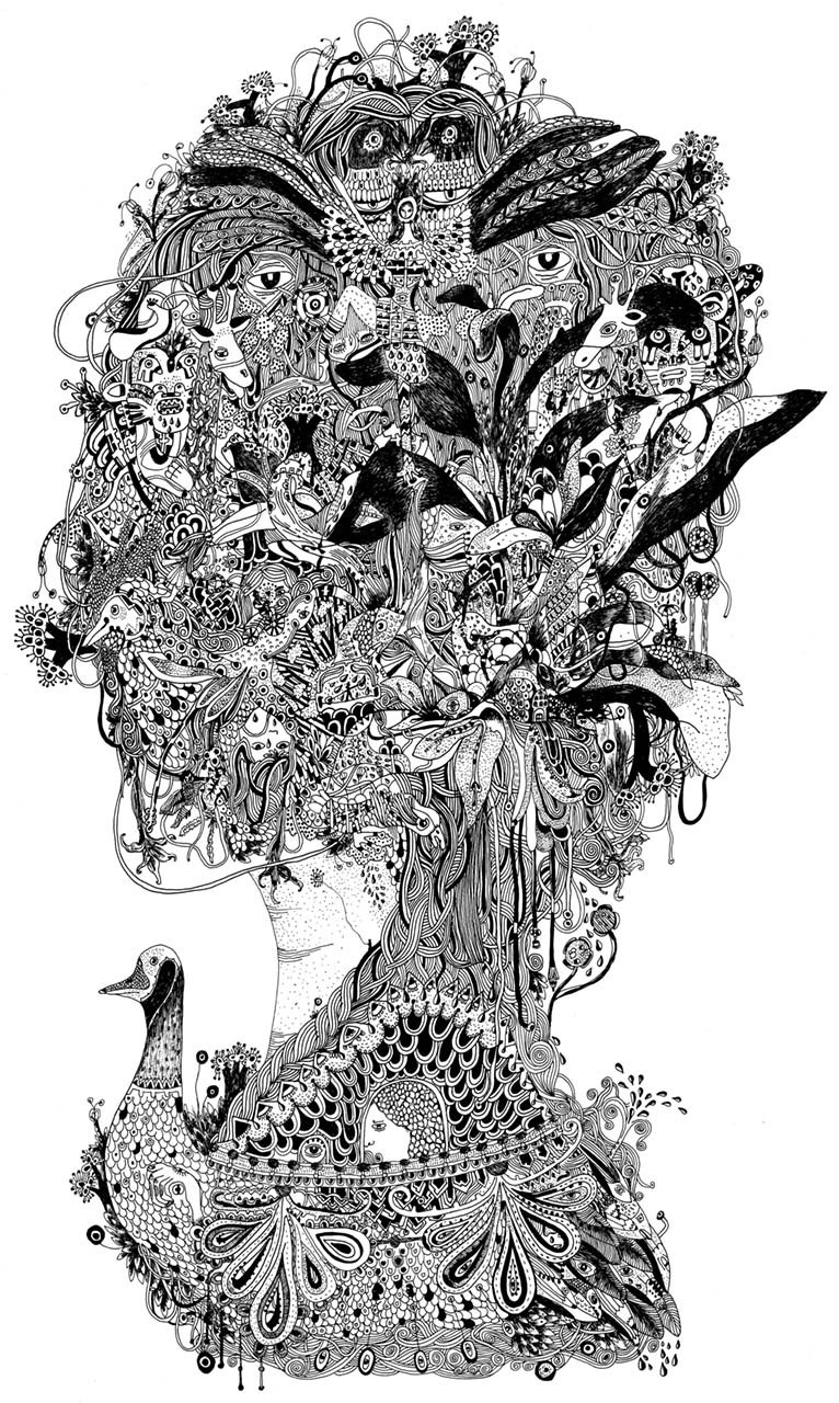 When Berlin based artist Meyoko got in touch with us a few days ago, we were immediately captivated by her meticulous drawn ink illustrations. Her influences are self emotion, beauty of woman, mythology, art nouveau, shape, details, ephemera, memories and dreams.