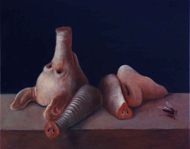 Sombre yet humoristic paintings by German based Estonian painter Paul Pretzer. Shown here is Schnüffelstück (Sniff Piece), 2010, 52,5×63 cm, oil on wood.