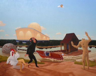 Set somewhere on the outskirts of our recognizable galaxy, the universe of painter Steve Galloway is scattered over numberless chunks of swampland where grotesque events transpire in bizarre, bucolic tropics that William Henry Hudson might have imagined in a paranoid, material dream.