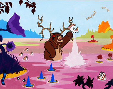 The Land, Before Time by illustrator Raymond Uhlir. Gouache and ink on paper 11 x 15 in.