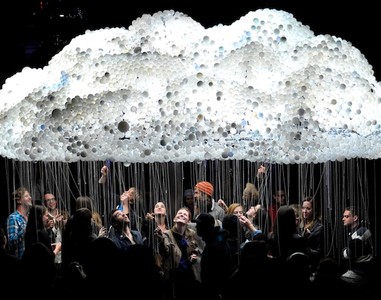 CLOUD is a large-scale interactive installation by Caitlind r.c. Brown for Nuit Blanche Calgary. Created from steel, metal pull-strings, and 5,000+ light bulbs (both illuminated and burnt out) CLOUD asks the viewer to participate by experiencing the work first hand – standing beneath the structure and pulling lights on and off, creating the flickering aesthetic of an electrical cloud. read more