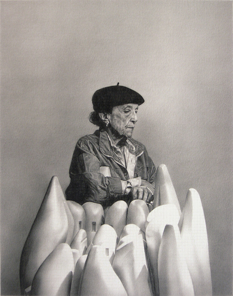 The drawings of Dan Fischer, meticulous graphite-on-paper recreations of widely known images of artists and their work from the mid-twentieth century to the present day, are remarkably simple propositions that ask some of the most complex and profound questions about art and contemporary visual culture. Whether based on iconic portraits of acclaimed artists, such as the photograph of Bridget Riley in the mid-1960s by John Goldblatt, or instantly recognisable images of an iconic artwork itself, such as Kurt Schwitters’ The Merzbau and Louise Bourgeois’ Germinal, each drawing by Fischer takes a photographic image with unmistakable currency, circulation and meaning within narratives of contemporary art history, and refashions it as an object of art.