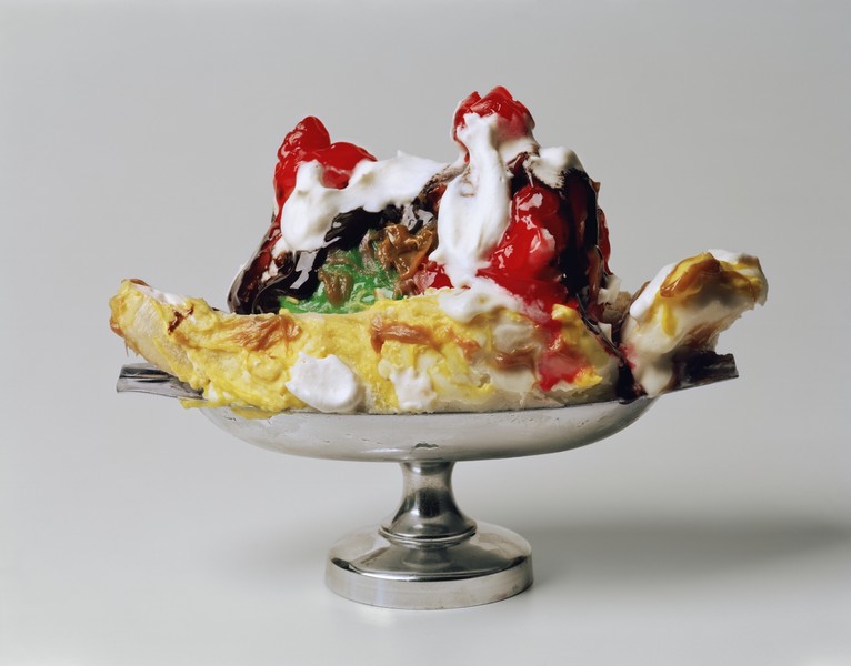 Oldenburgs is a new series of photographs by American artist Sharon Core in which she playfully examines the work of Claes Oldenburg. By transforming Oldenburg’s crudely made sculptures of American food, such as hamburgers, ice cream treats, and slices of pie, into larger-than-life photographs of edible food, these humorous objects are made to appear simultaneously delectable and grotesque. The series represents a clear continuation of Core’s interest in the relationship between art, food, and the commodification of both.