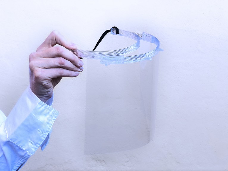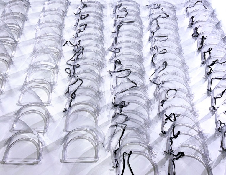 The masks are produced through robotic extrusion in a layer-by-layer FDM (fused deposition modelling). The material used is a PETG (Polyethylene Terephthalate Glycol) which is durable, tough, 100% recyclable, and has robust chemical resistance and high-impact strength.