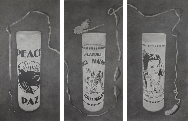 Ashley Thomas is a visual artist based in Corpus Christi, Texas. Thomas’ work memorializes overlooked objects through large-scale graphite drawings on paper. Her work forms an archive of relics sourced from her past that index traces of the feminine in material culture and acknowledges her personal Mexican-American history.