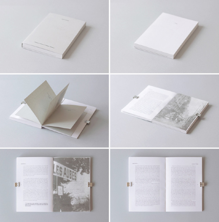 The cover design follows the same concept. The city of Paris is the entire history scenario, some images of the city are printed on cotton paper and interspersed in the book, these are almost transparent and blend in the story. Finally, the book includes an insert in gray paper with some illustrations of Nadja, who we later discover is a patient of the Vaucluse madhouse, that’s why gray is present throughout the book, to emphasize the status of sadness and depression experienced by Nadja.