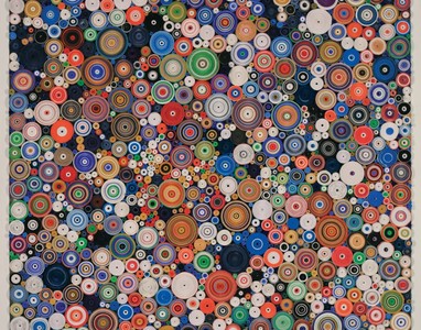 Hadieh Shafie was born in Iran and immigrated to the United States in 1983. Although Shafie works in a variety of media, the fundamental aspects of process, repetition and time appear throughout her work. To create her scroll pieces, Shafie marks strips of paper with Farsi text and rolls them in concentric circles.