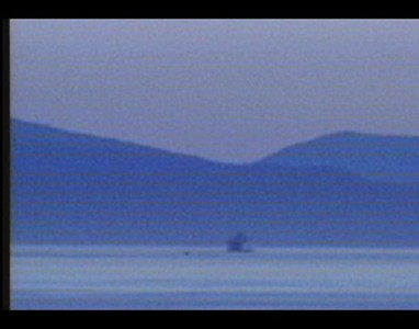 Depicting the coastal islands outside Vancouver, pictures is an enigmatic landscape portrait caught by a stationary camera. Reducing land and water into colour gradations on a flat plane, Richard Kerr compresses and fragments temporality to focus on the gradual shifts and rhythms of light. Boats that penetrate the frame serve as reminders of the artificial world, and indeed, of the medium itself.