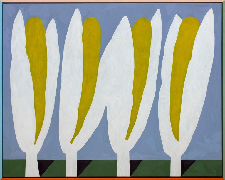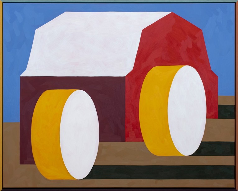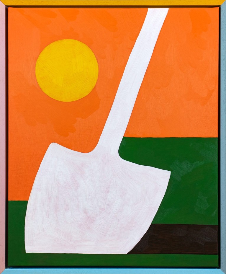 The works invite you to imagine yourself outside in the barnyard, on the farmland. They are shy of animals or human figures; no-one is ploughing the fields, scattering seeds or preparing the soil for planting. Perhaps this suggests that the viewer takes on the role of the farmer being asked to observe, enjoy and wander without getting dirty and tired from their labours. In this continuation of his minimal figurative vocabulary Van Den Nieuwendijk engages the agricultural setting in a unique way encouraging the viewer to focus on the often overlooked; from farm buildings to garden tools, as well as revisiting subjects like a cactus, a bell pepper, plants and flowers.